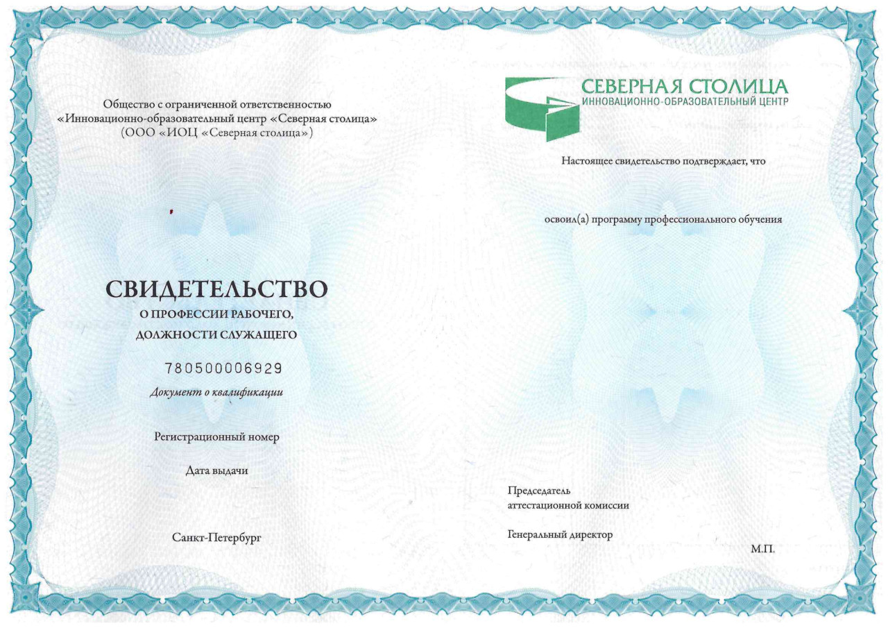 - Свидетельство о профессии рабочего