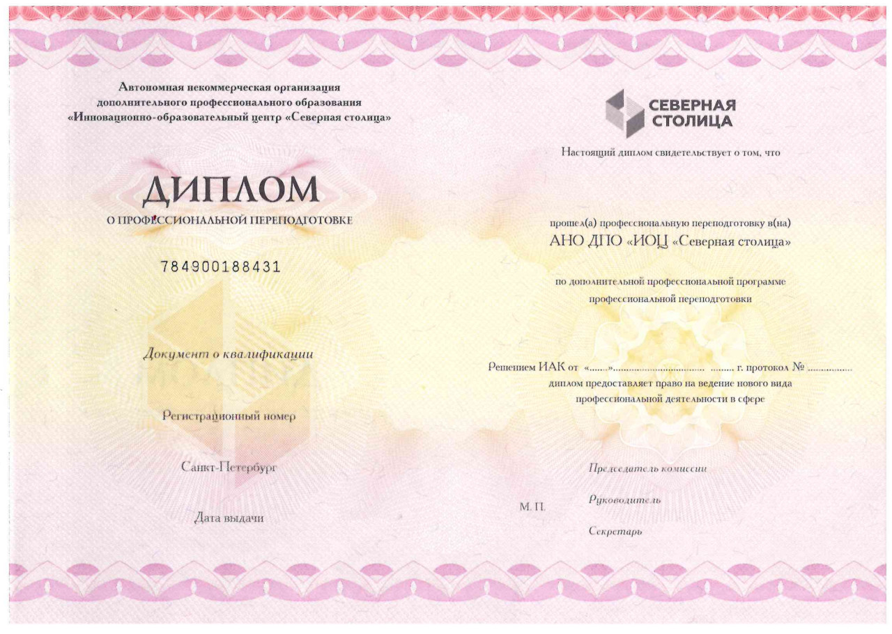 Выдаваемый документ: в случае успешного прохождения итоговой аттестации слушателю присваивается квалификация «Специалист по техническому обслуживанию и ремонту радиоэлектронной техники» и выдается диплом о профессиональной переподготовке установленного образца.